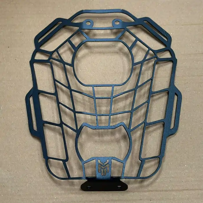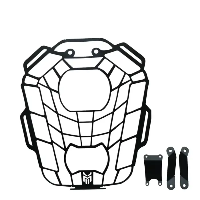 Honeycomb pattern headlight guard provides superior protection for your motorcycle’s headlight assembly while maintaining optimal visibility and light transmission.
