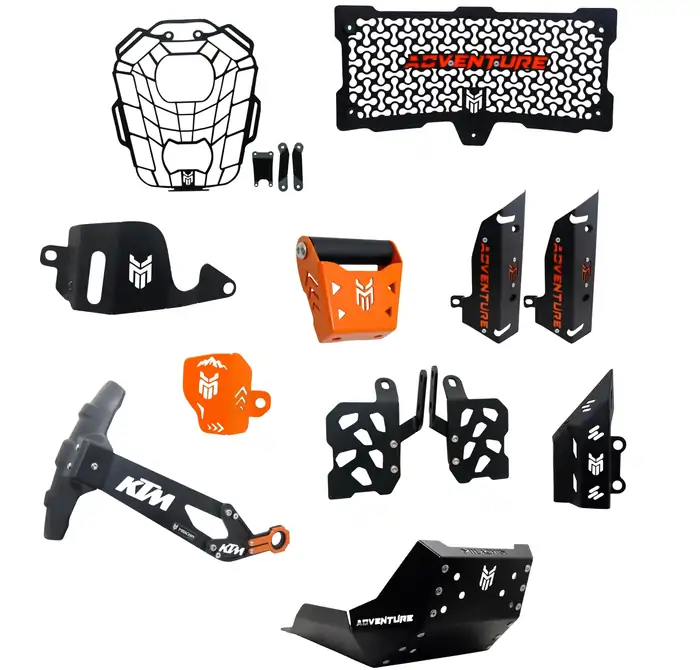 KTM Adventure 250 390 X 2025 Motorcycle Protection Kit, Radiator Guard, Sump Guard, Headlight Grill, Tyre Hugger, GPS Mount, Black, set 0f 10