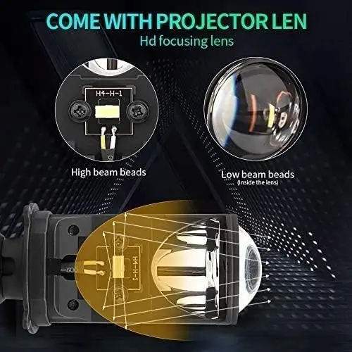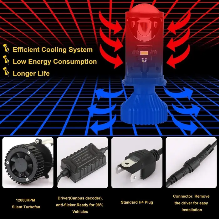 HJG original projector lens led bulb 45W Lamp H4 LED Mini Projector Lens with Fan for Bike Bulb 7000LM Conversion Kit Hi/Lo Beam Headlight 12V/24V for Motorcycle Pack Of 1(White)