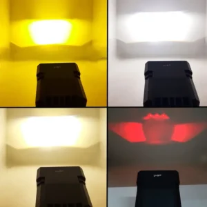 - Dual lens design: Yellow and white light options for versatile use