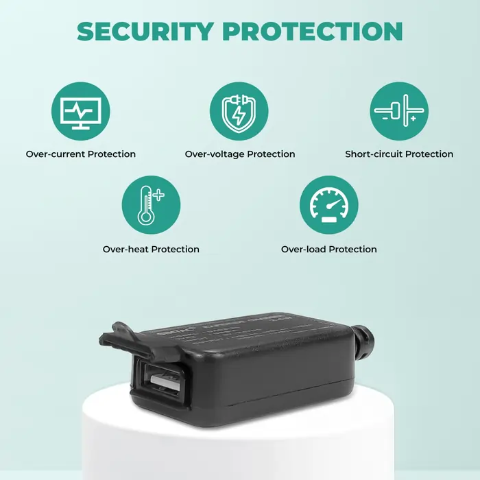 24W Fast Charging: Power up your devices at lightning speed, perfect for riders on the go!
