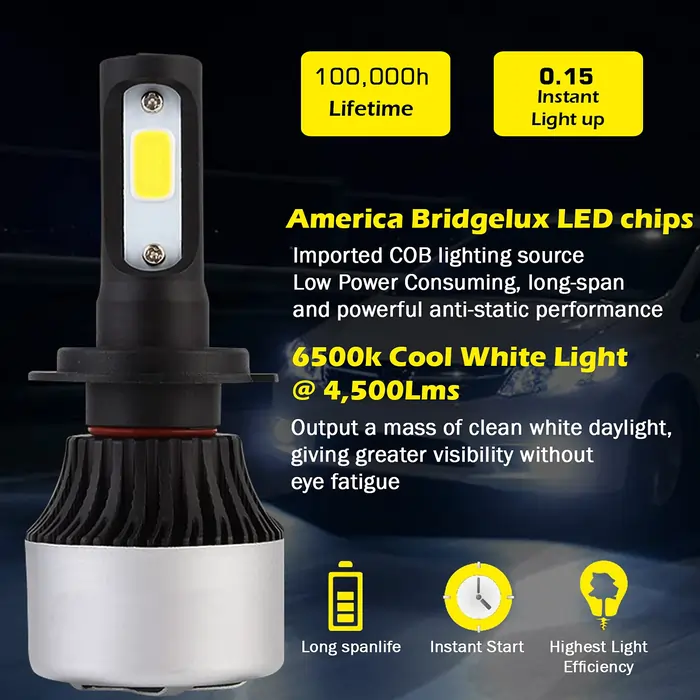 - Great for conversion kit headlight safety driving at night. Far more than the halogen lamp and hid lamp. Get up to 30% more light on the road compared to a standard halogen headlight bulb , Works underwater , Shockproof, Solid-State, High Shock / Vibration Resistant LED drivers with over-heat protection