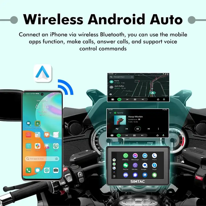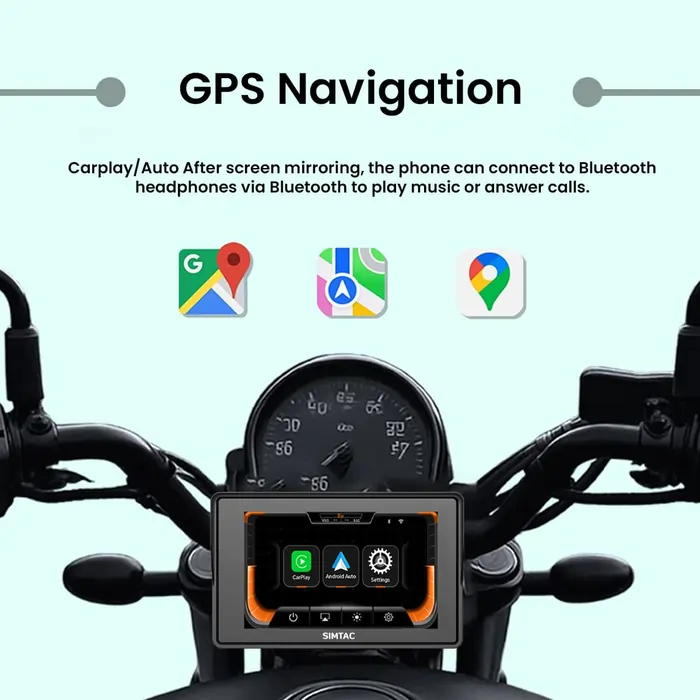 Simtac 5 Inch motorcycle GPS CarPlay & Android Auto system – M2T with TPMS