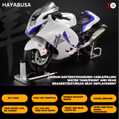 Suzuki Hayabusa GSX-1300R Alloy Model 1:6 Scale Collectible Alloy Metal Diecast Motorcycle Model with Sound, Light & Dynamic Display – Battery Operated