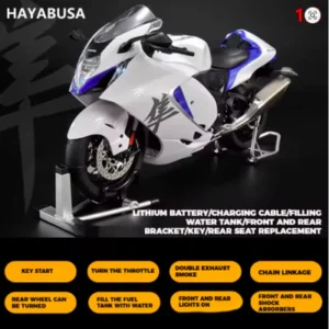 Suzuki Hayabusa GSX-1300R Alloy Model 1:6 Scale Collectible Diecast Motorcycle Model with Sound, Light & Dynamic Display – Battery Operated